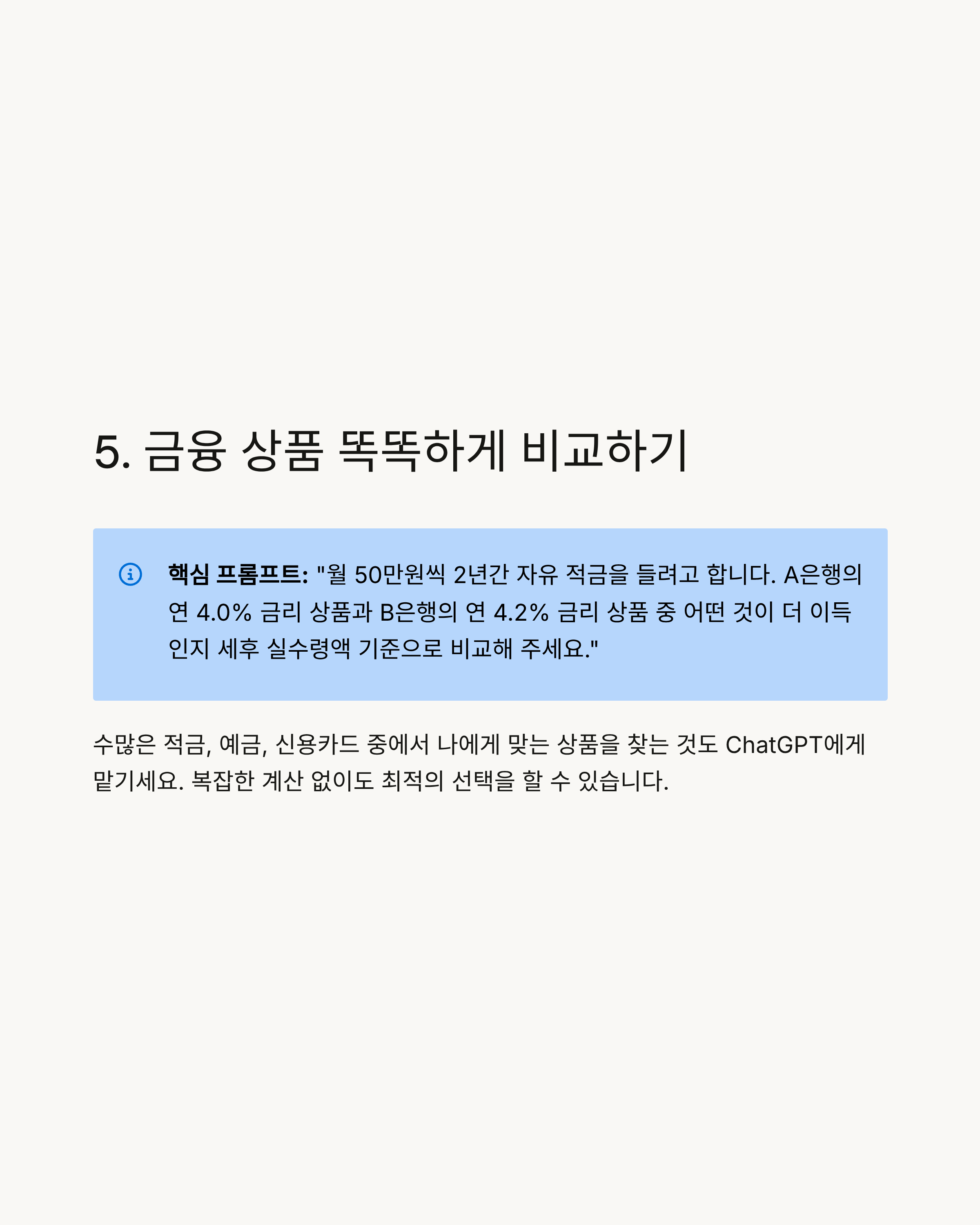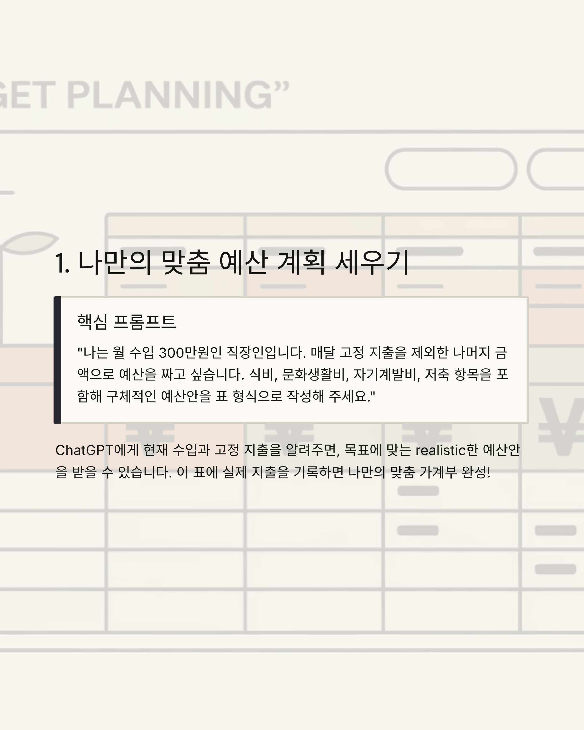 챗GPT로 돈 걱정 끝! AI로 똑똑하게 자산 관리하는 8가지 비법 (feat. 프롬프트 예시)챗GPT & AI 도구 2025. 9. 18. 12:00반응형