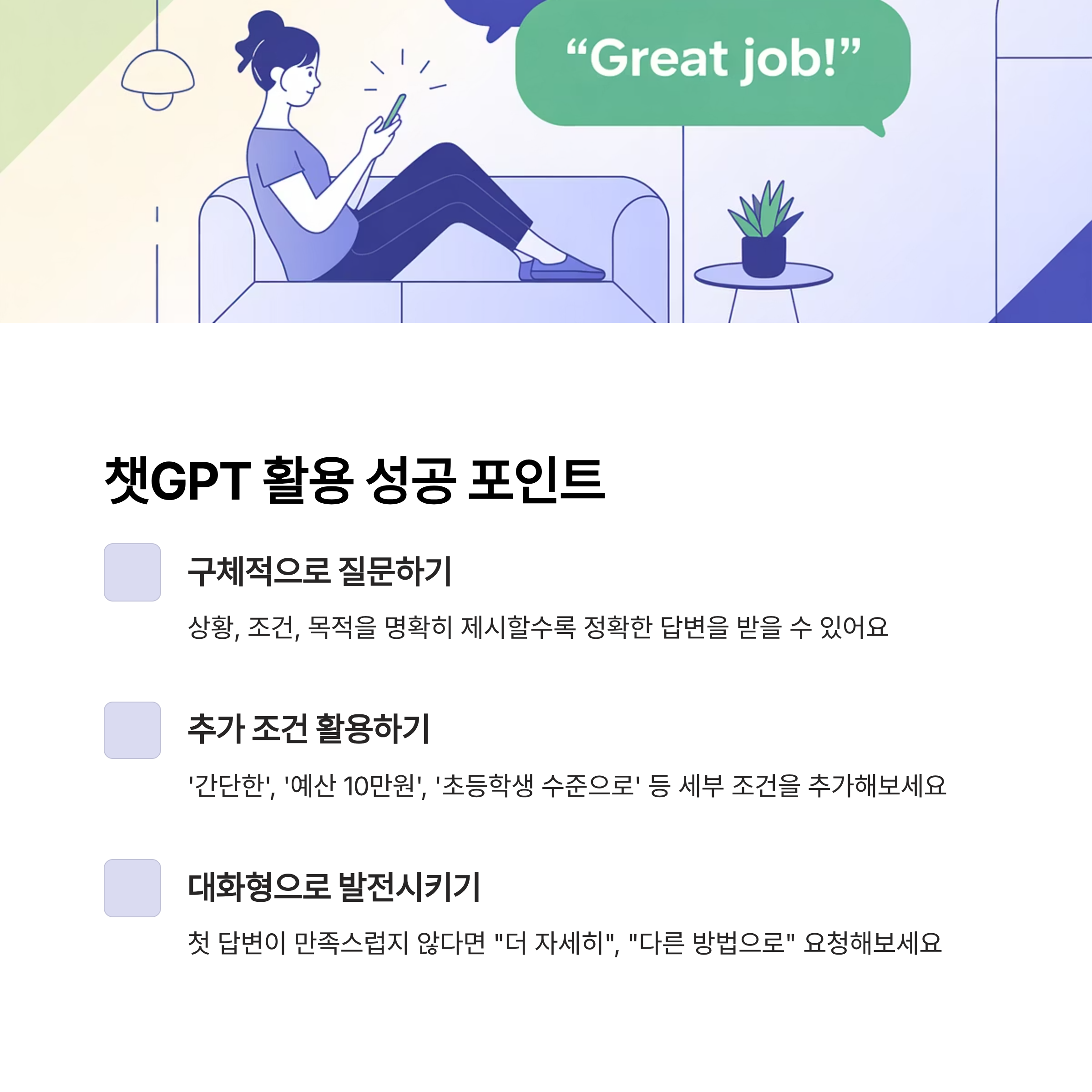 챗GPT로 일상 고민 뚝딱! AI 만능 해결사가 알려주는 7가지 생활 꿀팁 (feat. 프롬프트 예시)챗GPT & AI 도구 2025. 9. 19. 12:00반응형