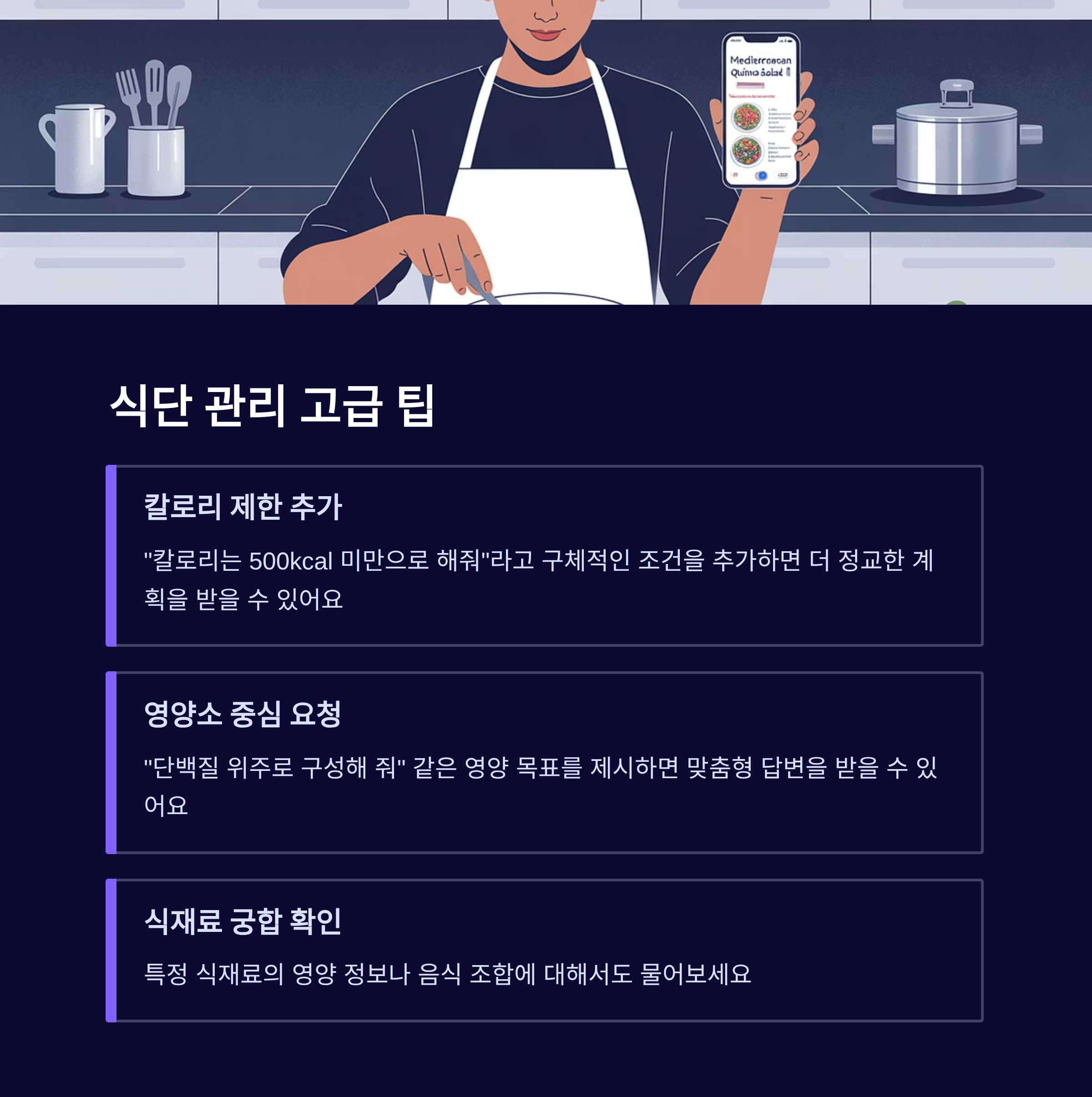 4번째 포스팅: AI 셰프가 알려주는 나만의 레시피! 똑똑하게 요리하는 법 (0) 2025.09.24 세번째 포스팅: 영어는 기본! AI와 함께 즐겁게 외국어 배우는 법 (0) 2025.09.24 14.AI로 요리 생활 업그레이드: 똑똑한 레시피 추천부터 식재료 관리까지 (0) 2025.09.24 두번째 포스팅: 음표를 몰라도 괜찮아요! AI로 나만의 음악 작곡하기 (0) 2025.09.23 챗GPT & AI도구 #13. 외국어 공부, 챗GPT로 끝내자! AI와 함께하는 초고효율 언어 학습법 (0) 2025.09.23
