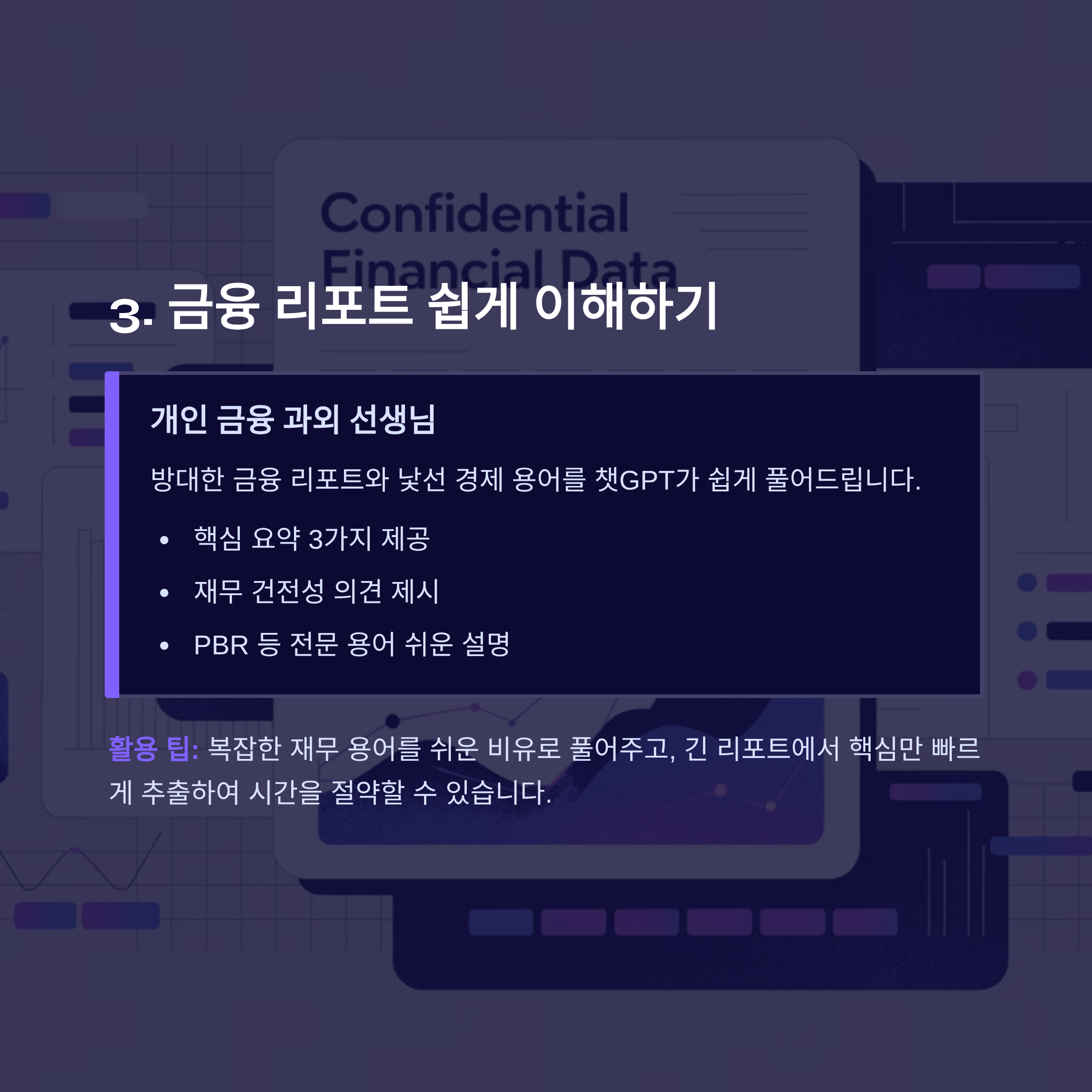 이제 걱정 마세요! 챗GPT는 더 이상 단순한 AI 챗봇이 아닙니다. 금융 지식을 습득하고, 투자 아이디어를 얻으며, 복잡한 리포트를 순식간에 분석하는 **'나만의 AI 투자 컨설턴트'**가 될 수 있습니다.