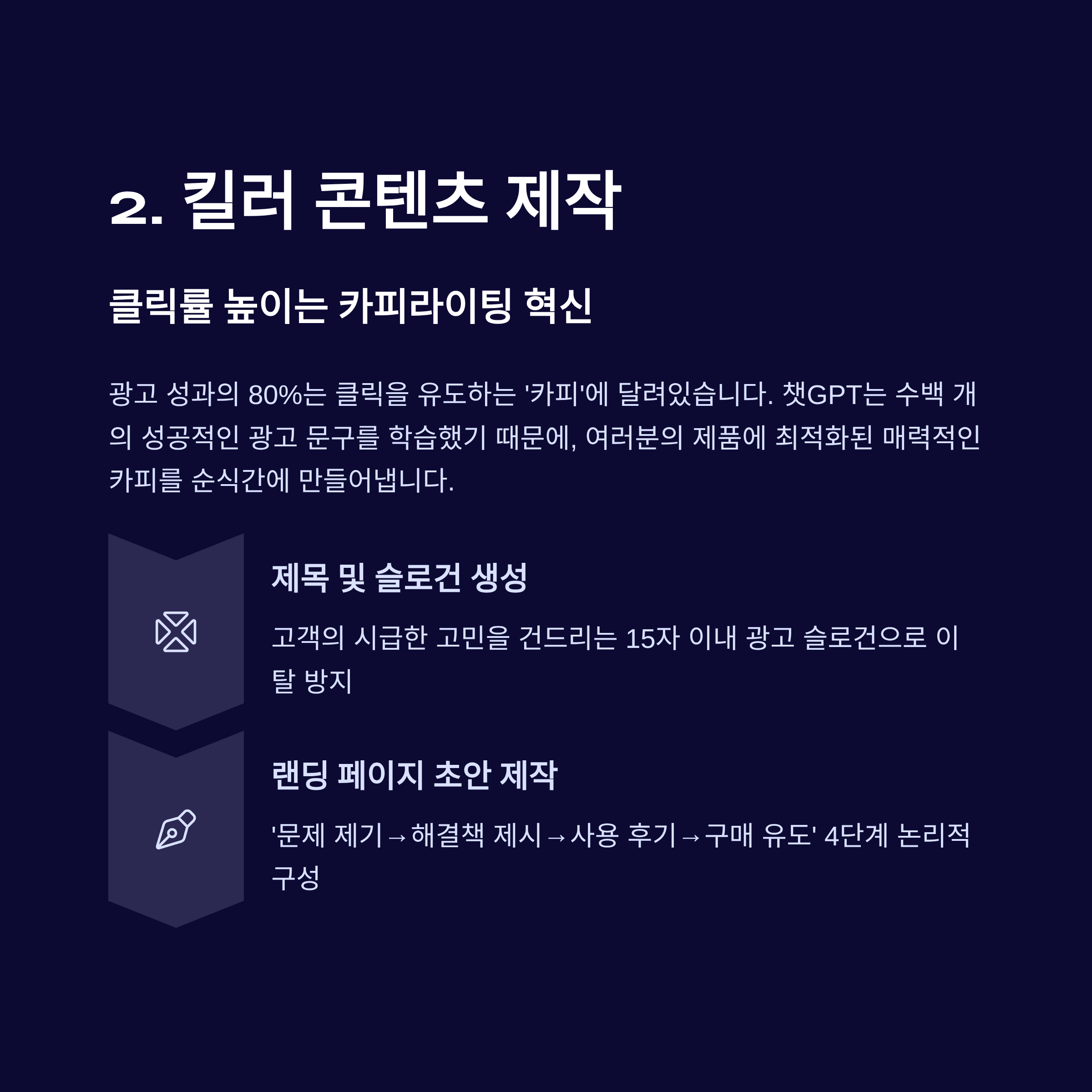 이제 걱정 마세요! 챗GPT와 다양한 AI 도구는 여러분의 마케팅 활동을 개인화, 효율화, 최적화하는 최고의 파트너가 될 수 있습니다. AI는 단순한 광고 카피 생성을 넘어, 잠재 고객의 심리를 분석하고, 예산을 가장 효과적인 곳에 분배하며, 마케팅 캠페인 전체를 지휘하는 '디지털 CMO(최고 마케팅 책임자)' 역할을 수행합니다.
