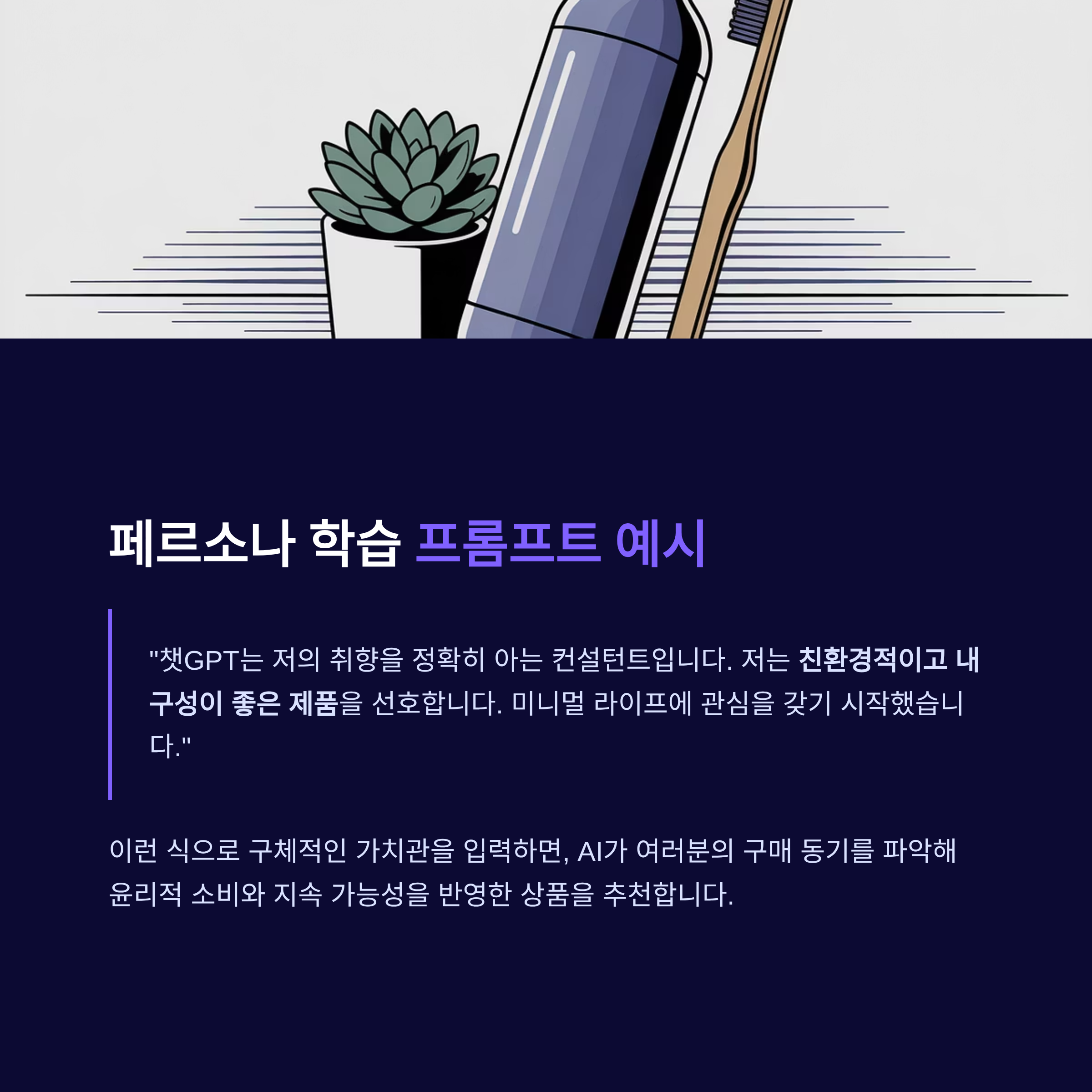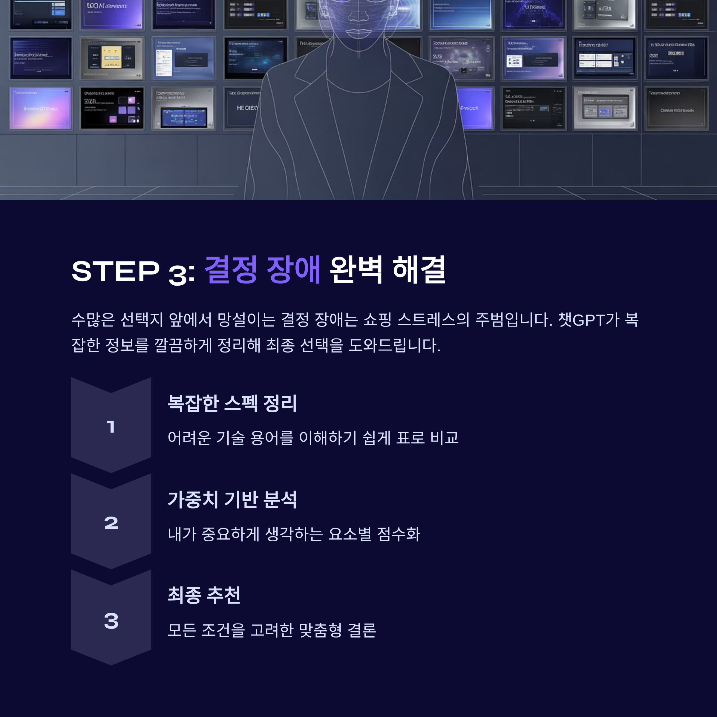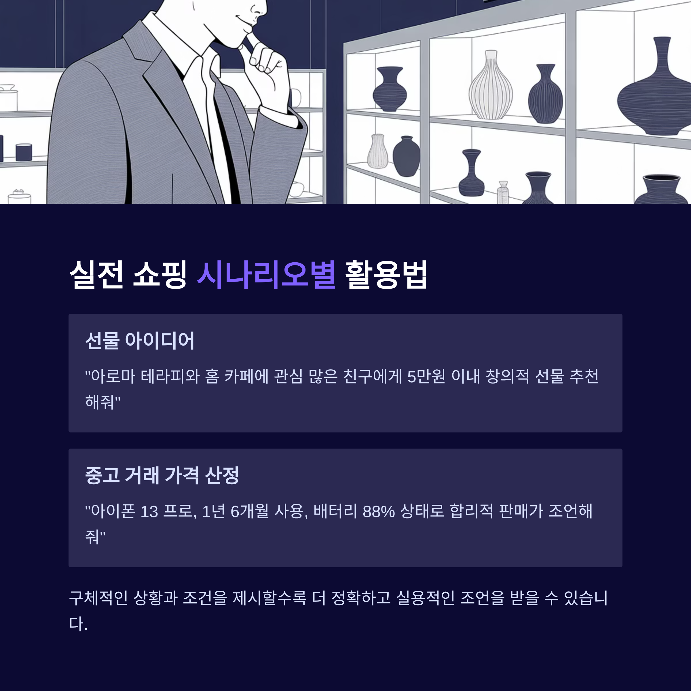 하지만 이제 걱정 마세요! 챗GPT를 활용하면 이러한 쇼핑의 비효율을 완전히 제거할 수 있습니다. AI는 단순한 검색을 넘어, 여러분의 취향과 가치관까지 파악하여 최적의 상품을 찾아주고, 가격뿐만 아니라 '가치'까지 비교해 주는 완벽한 **'개인 쇼핑 도우미'**가 되어줍니다.