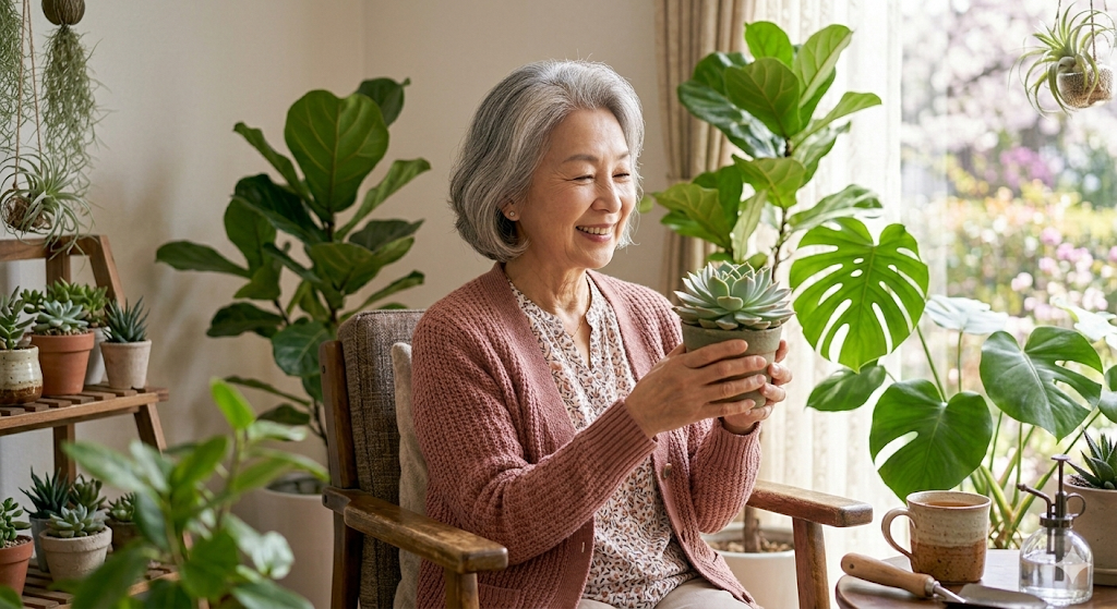 단순한 인테리어가 아닙니다. 식물과 교감하는 것은 시니어 건강에 큰 도움이 됩니다.