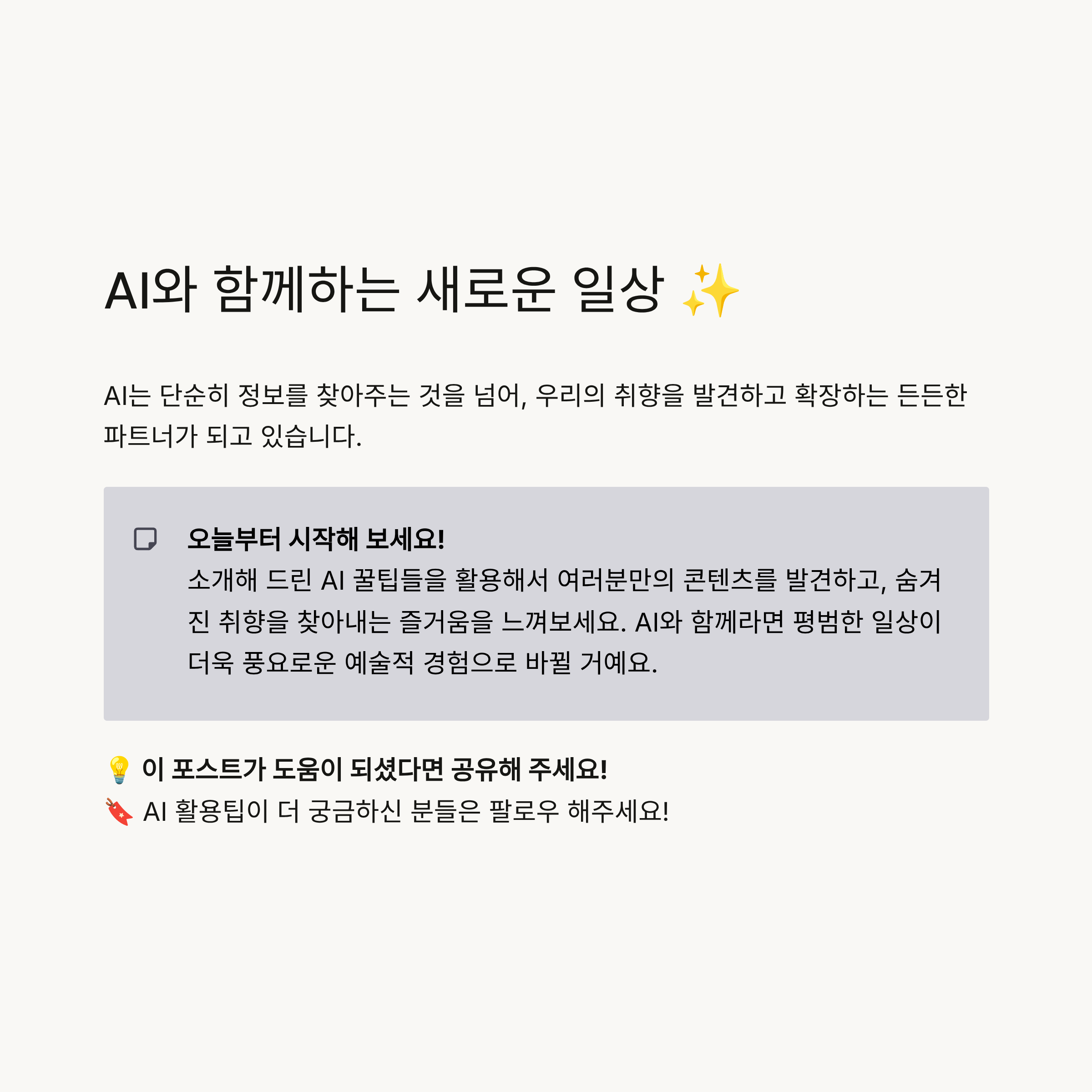 오늘은 AI를 활용해 나의 진짜 취향을 찾고, 콘텐츠를 더욱 풍성하게 즐기는 방법을 소개해 드립니다.
